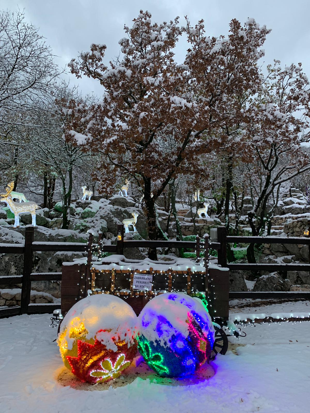 U Dolcu Gornjem, ali ne onom što odmah vuče na poznatiji Primorski, nego onom istočnijem, put Omiša, podno sjeverne strane Mosora, kada zapuše bura, hladno je, rekli bi na selu, ka u jaceri. Mrznu ruke, mrznu noge, ledeno je i kada se po školski slojevito obučeš. Kraj je to tipični dalmatinski brdski, s višetonskim gromadama od stina, s putevima u brdo koji vode negdje, nigdje. Oni što su se kroz godine u kojima se trbuhom za kruhom, i privučen svjetlima grada polako iseljavao ljudski život, gubili pod slojevima šiblja, grmlja, odrona. I gle čuda, u toj pustopoljini, u malom zbiru napuštenih starih kamenih djedovina, u seocetu bez tekuće vode, kanalizacije, noćne rasvjete, Tihomir Lučić, 38-godišnji vizionar, odlučio je stvoriti Božićno selo.